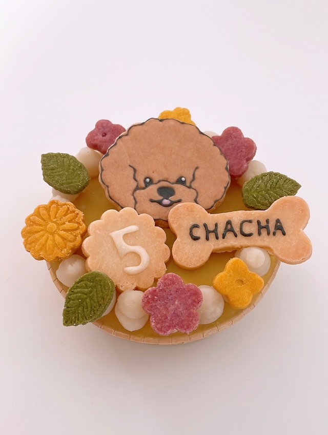 サイズ:直径約10cm、高さ約4cm 米粉を使ったケーキの生地に、じゃがいものクリームでデコレーションしています。 その上にワンちゃんのアイシングクッキーやお花のクッキーなどをトッピングしています。 ※現在取り扱っている犬種は写真でご確認ください。 ケーキとクッキーは別で包装していますので、お客様の方でクッキーをトッピングして下さい。 ※小さいクッキーは冷凍のままトッピングできます。 【発送】 ご注文・お支払いが完了してからお作りし、配送準備ができ次第発送させていただきますので、ご入用のお日にちより2週間前までにご注文ください。 日時指定をご希望の方は公式LINEにてご相談下さい。 【配送方法】 クール宅急便 【原材料】 (ケーキ) 米粉、卵、米麹甘酒、じゃがいも、メープルシロップ、かぼちゃパウダー (アイシングクッキー) 米粉、アーモンドパウダー、無調整豆乳、米油、メープルシロップ、ココナッツミルクパウダー、乾燥卵白、竹炭パウダー、キャロブパウダー、天然着色料 (お花クッキー) 米粉、アーモンドパウダー、片栗粉、無調整豆乳、米油、米麹甘酒、紫芋パウダー、ほうれん草パウダー、かぼちゃパウダー 【賞味期限】 ケーキ :お届け日から冷凍で2週間 クッキー:お届け日から冷凍で3週間 ※冷蔵庫で解凍後、翌々日以内にお召し上がり下さい。 ※一度解凍したケーキ、クッキーの再冷凍はお控え下さい。 【アイシングクッキー&ケーキをご注文された方へ】 アイシングクッキーを作る際にワンちゃんの毛色を参考にさせていただきたいのでお写真が必要となります。下記の公式LINEを登録していただき、ご注文していただいた方のお名前、ワンちゃんの犬種・名前・年齢(お誕生日を迎えられる時の)、なるべく正面を向いたワンちゃんのお写真をお送り下さい。 https://line.me/R/ti/p/@759asvqy?from=page&searchId=759asvqy